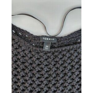 This Torrid open-knit sweater, sized 3/4, combines comfort and style with its cotton-acrylic blend. Ideal for all-season wear, it offers a breathable design.