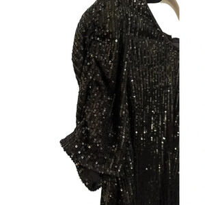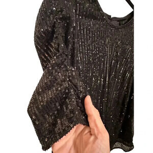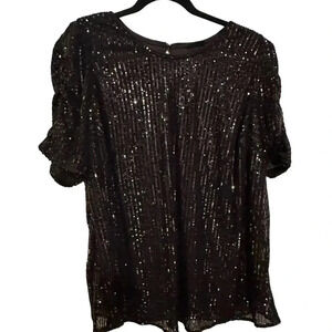 Torrid Women's Black Round Neck Sequin Ruched Short Sleeves Top Size 0