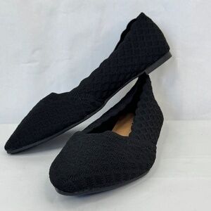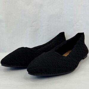 Torrid Womens Black Scallop Edge Stretch Knit Pointed Toe Flat Shoes Sz. 8 WW
