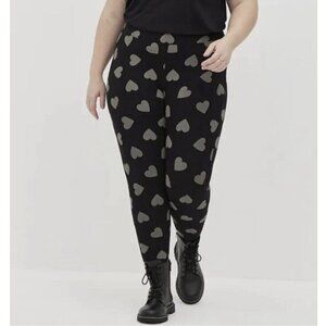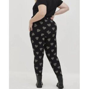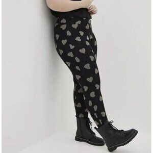 Torrid Women's Black Silver Hearts Mid Rise Full Length Premium Leggings Size 1X