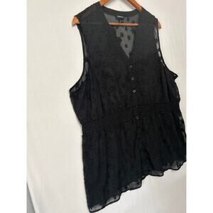Torrid Women’s Black Sleeveless Button Front Blouse Sheer Star Pattern Size 3X