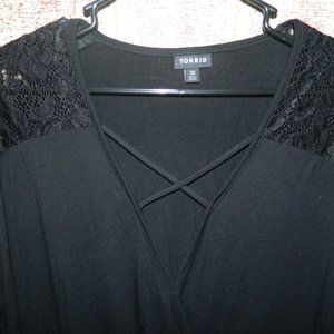 Torrid Women’s Black Strappy Surplice Lace Blouse Size 00 - 10 M/L (Q-32)