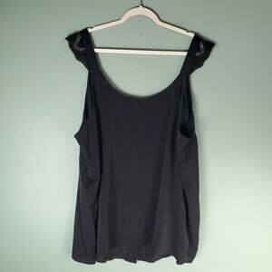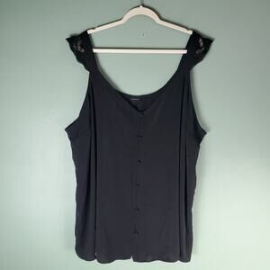 Torrid Womens Black Studio Crepe de Chine Lace Trim Button Front Tank Size 5 or 5X or 28