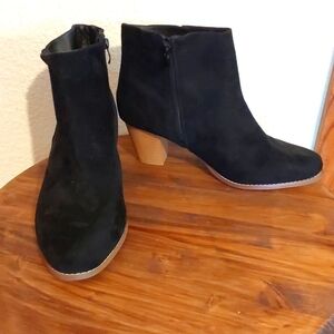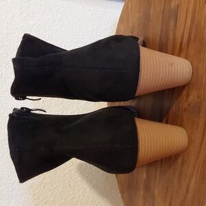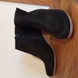 Torrid Womens Black Suede Side Zip Boots Booties stacked heel Neutral New! Sz.12