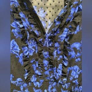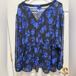 Torrid Womens Blouse 3X Blue Black Button Up Floral Shirt Long Sleeve button down