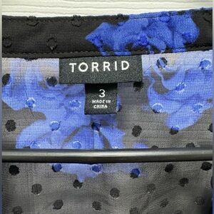 Torrid Womens Blouse 3X Blue Black Button Up Floral Shirt Long Sleeve button