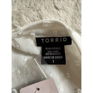 Torrid Women’s Blouse Sheer V-Neck Swiss Dot Button Up Size 1/1X White New