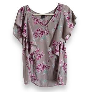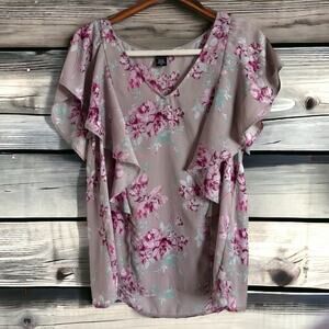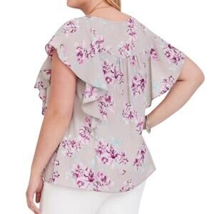 Torrid Womens Blouse Sz 00 10 Flutter Sleeve Georgette Purple Gray Aqua