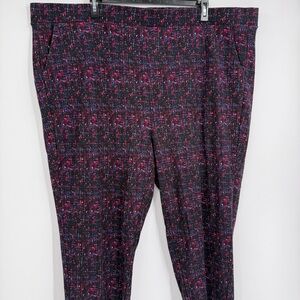Torrid Women’s Blue Black pink Leggings Size 6X Pull On Elastic Waist Stretch. Rayon nylon spandex. Waist 56. Inseam 27. Measurements are approximate. Confetti pattern. Very good preowned condition.