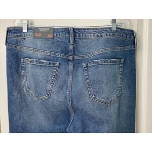 Torrid Women's Blue Button Fly High Rise Straight Studded Raw Hem Jeans Size 14R