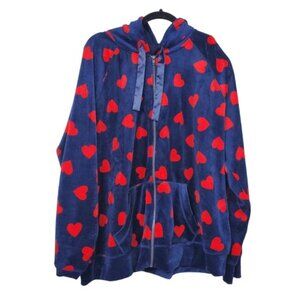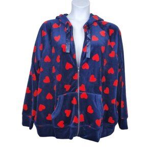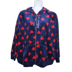 Torrid Womens Blue Red Heart Print Velour Front Full Zip Hoodie Size 3X NWT