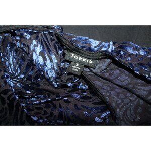 Torrid Women's Blue Velvet Short Sleeve Cutout Back Dress. Size 3/3X, great condition. Button back neckline. 47% nylon, 39% polyester, 14% spandex.