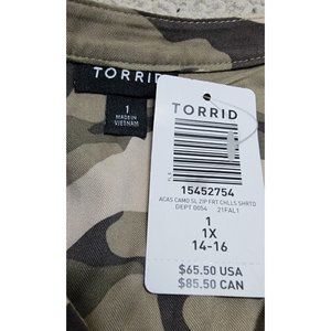 Torrid Womens Camouflage Mini Challis Zip Front Shirt Dress Sleeveless 1X NWT