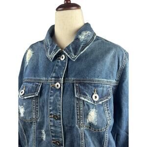Torrid Womens Chore Jacket 2X (18-20) Longline Denim Distressed Oversized NWT