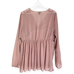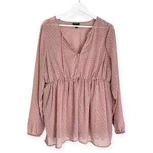 Torrid women’s clip dot tie babydoll top in blush pink. Size large 12-14, torrid size 0.
