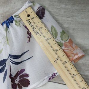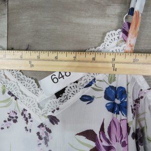 Pre-Owned, Excellent Condition! Shell/Lining 100% Polyester. Adjustable Straps, Laced V-Neckline, Cream Color with Multicolor Floral Print Design.