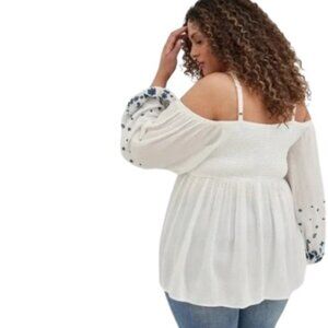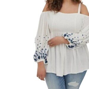 Torrid Womens Cold Shoulder Top White Embroidered Smocked Gauze Plus 2X New