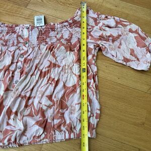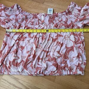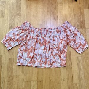 Torrid Women's Crinkle Gauze Off Shoulder Top Baja Floral Camellia. Color Orange & White. Size 2X / 18-20. New with the tag.