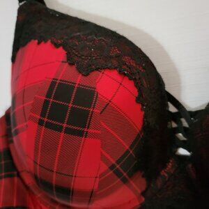 Torrid Womens Curve Bra Sz 44D Push Up Plunge Underwire Tartan Plaid Sz 44D