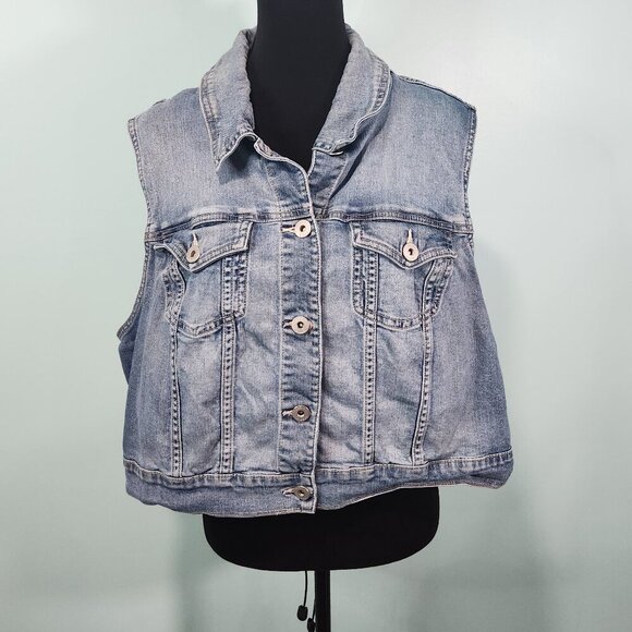 Torrid Women’s Denim Jean Vest Size 3 Cropped Light Wash Collared Lot H