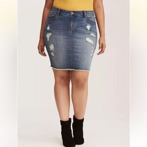 NWT Torrid Women’s Denim Mini Skirt - Distressed Medium Wash Size 12 NWT
