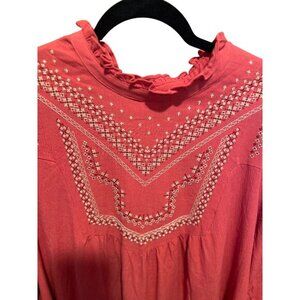 Torrid Women's Embroidered Red Long Sleeve Blouse Size 1 Rayon