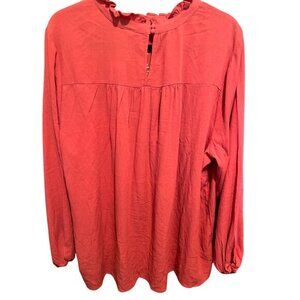 This Torrid blouse combines elegance with comfort, featuring intricate embroidery and a flattering fit. Made from a soft rayon and polyester blend, it provides a stylish and relaxed look. The vibrant red color and long sleeves make it versatile for various occasions.