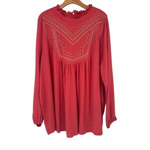Torrid Womens Embroidered orange crinkle Blouse Size 3X Long Sleeve