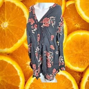 Torrid Women's Emma Babydoll Crinkle Gauze Long Sleeve Tunic Top Size 1