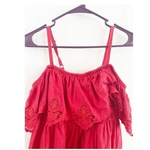 Torrid Women's Eyelet Babydoll Cold Shoulder Tank Blouse in Red