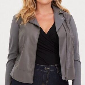 Torrid Women’s Fab Mix Faux Leather Full Zip Moto Jacket in Grey Size 1X 14/16