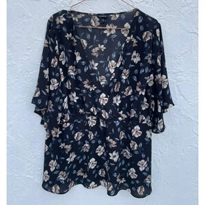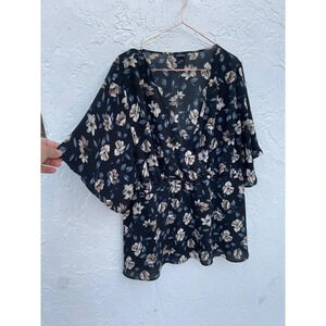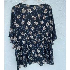 Torrid Womens Faux Wrap Babydoll Georgette Surplice Blouse Floral Black Sz 2