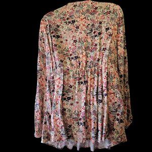 Torrid Womens Floral Boho Tunic Lace-Up With Long Sleeves Size 1