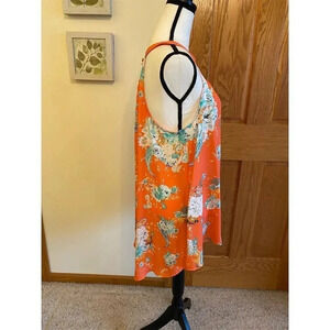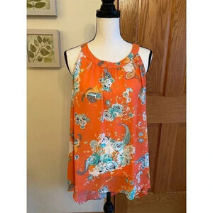 Keywords: Torrid, women's tank, orange tank, floral tank, high neck tank, sleeveless top, summer wear, casual top, polyester tank, size 1XL, regular fit, women's fashion, summer fashion, pre-owned clothing, sleeveless tank