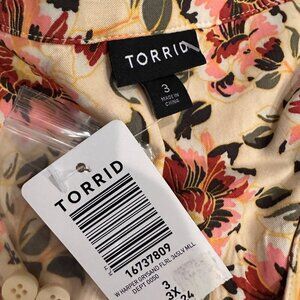 This Torrid blouse features a lightweight rayon fabric with a vibrant floral print. Its 3/4 sleeves and relaxed fit provide both style and comfort.