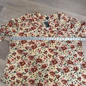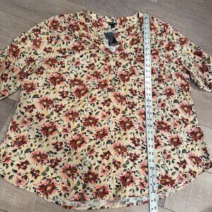 Torrid Womens Floral Print 3/4 Sleeve Blouse Size 3X 100% Lightweight Cream Pink