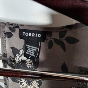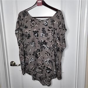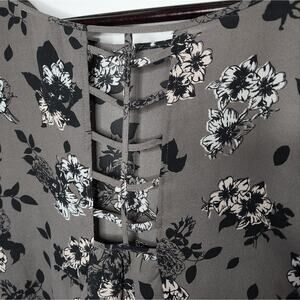 Torrid Womens Floral Short Sleeve Georgette Top Black Gray 2 Cage Back