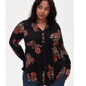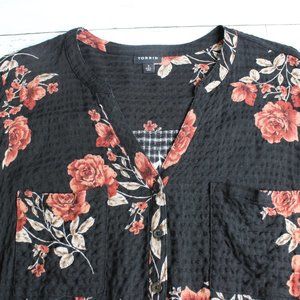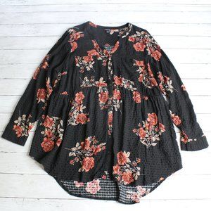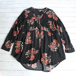 Torrid Womens Floral Tunic Top Plus Size 3 3X Black Burgundy Roses