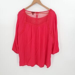 Torrid Womens Gauze Crochet Lace Top Embroidered Blouse Red Coquette 1X NWT