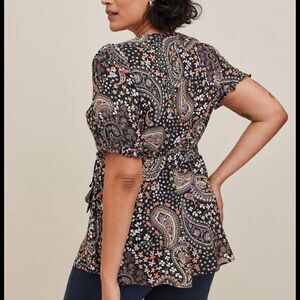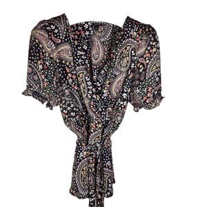 Torrid Womens Georgette Surplice Puff Sleeve Blouse Size 2X Paisley Tie Waist