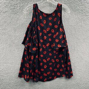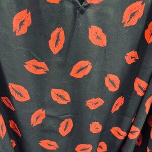 Torrid Womens Georgette Top 3 3X Red Black Lip Kiss Print Going Out Night Out