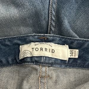 Torrid Womens Girlfriend Jeans Stretch Denim Distressed Tapered Plus Size 14R