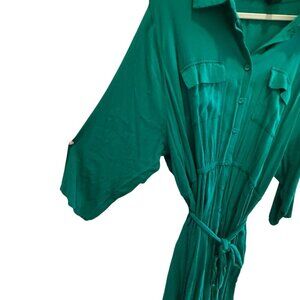 Torrid Womens Green Collared Button-Front Dress With Waist Tie Size 4