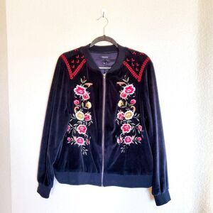 Torrid Womens Jacket Black 1X Embroidered Floral Bomber Full Zip 1 Velvet
