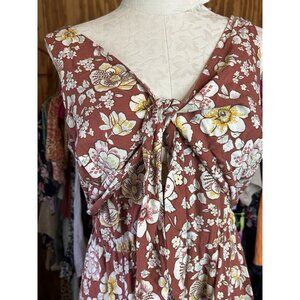 Torrid Women's Knee Length Dress size 1 (1X) Floral Front Tie Challis Red