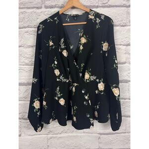 Torrid Womens L Romantic Gothic Whimsigoth Dark Floral Surplice Peplum Blouse