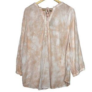 Torrid Women's L Tie Neck Peasant Top Dusty Rose Lightweight Marble Tie Dye New