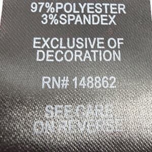 • Fabric: 97% polyester, 3% spandex (exclusive of decoration)