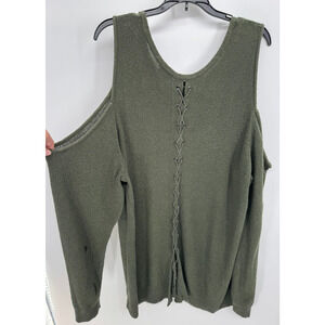 Torrid Womens Pullover Lace-Up Sweater Cold Shoulder Long Sleeve Size 4 Green NWOT