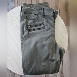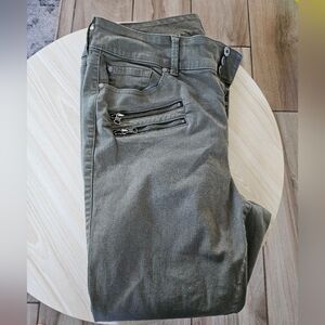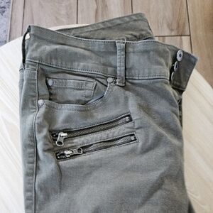 Stylish olive green pants with zipper details. Perfect for casual wear.